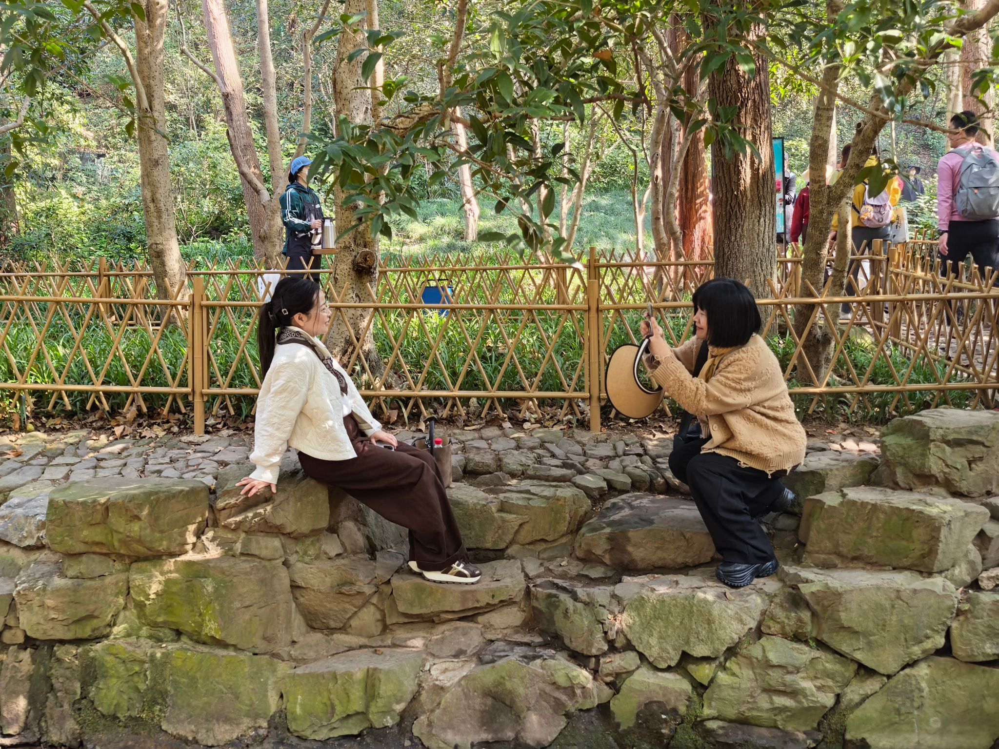 清晨,教职工们乘车抵达九溪十八涧。时值深秋,沿途层林尽染,溪水潺潺,大家沿着蜿蜒的步道漫步,欣赏自然风光,感受秋日韵味。活动中,大家三五成群,或驻足欣赏沿途风光,或畅谈工作与生活趣事,或拍照定格美好瞬间,欢声笑语回荡在林间溪畔。