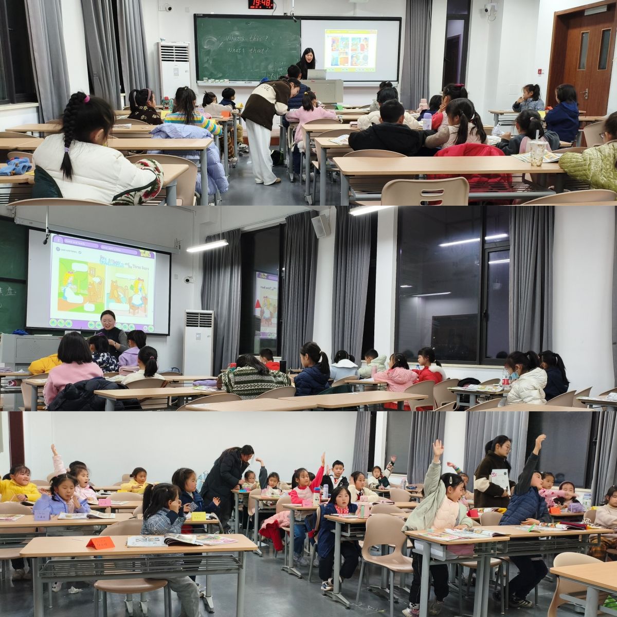 本次公益课充分发挥外国语学院的专业教学优势,根据孩子的年龄与英语基础,分别开设启蒙班与基础阅读班。青年女教师与大学生志愿者以绘本故事为载体,结合英文歌曲、情景表演、互动游戏等多种形式,打造沉浸式、互动式的语言学习环境。孩子们从起初的羞涩模仿,到后来踊跃参与角色扮演、主动用英语表达,不仅提升了语言能力,也在集体学习中培养了分享与合作的意识。