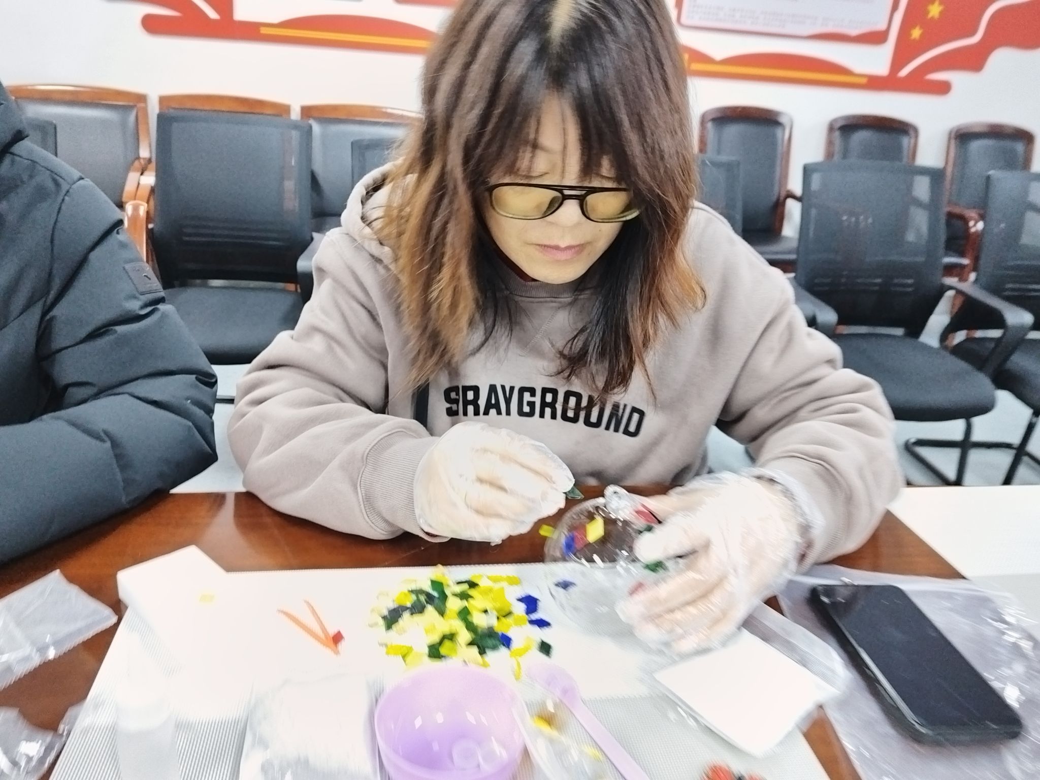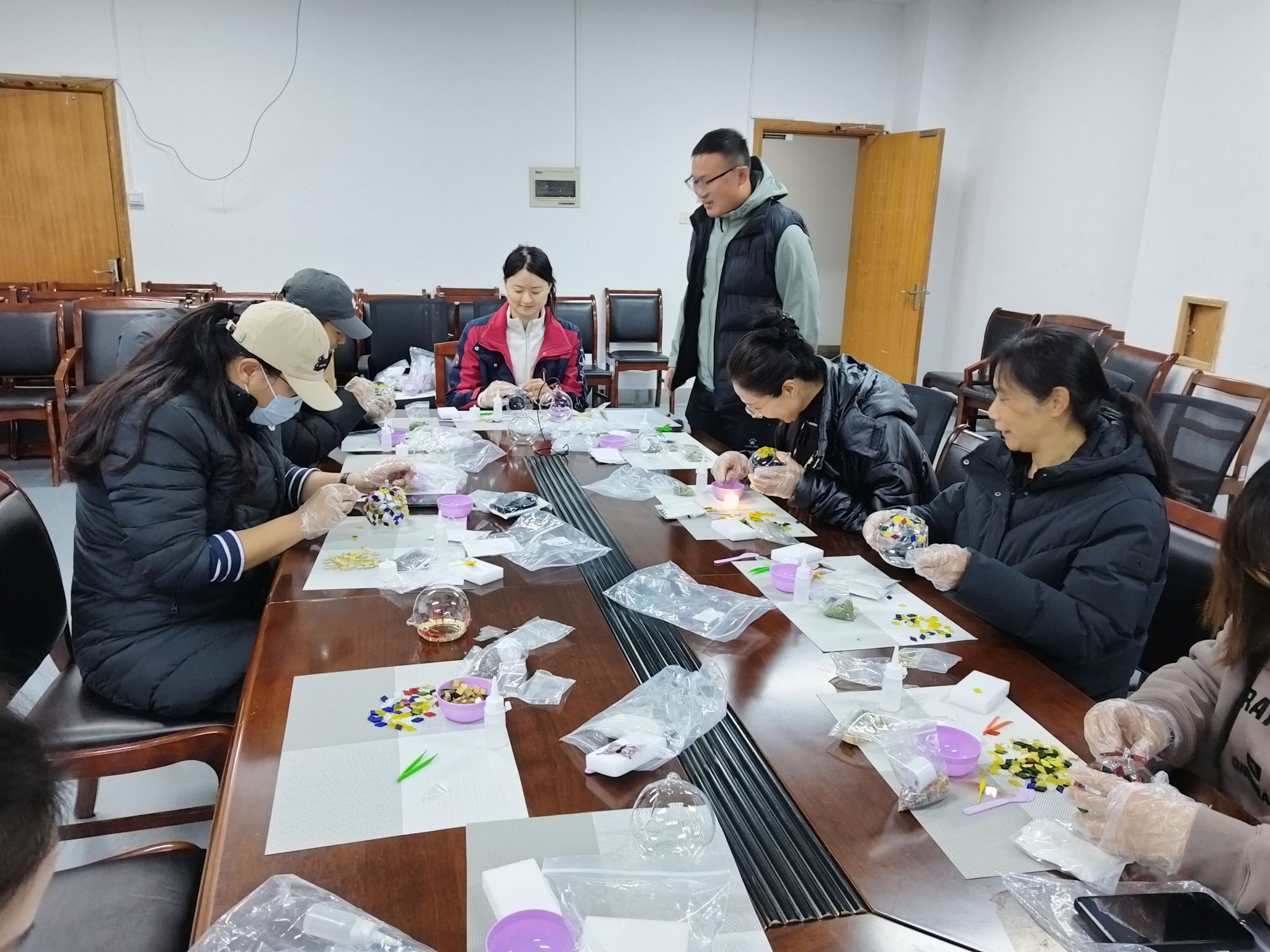 活动现场布置得温馨雅致,五彩斑斓的玻璃片、造型各异的灯座、精致的金属配件、暖光LED灯芯等材料整齐摆放,琳琅满目。专业的手工老师首先为大家讲解了玻璃灯的制作原理、设计思路和操作技巧,从玻璃片的裁剪拼接、图案创作,到灯座的组装、电路的连接,每一个步骤都细致演示、耐心讲解。女职工们围坐在一起,兴致盎然,纷纷发挥想象力,开启创意构思。