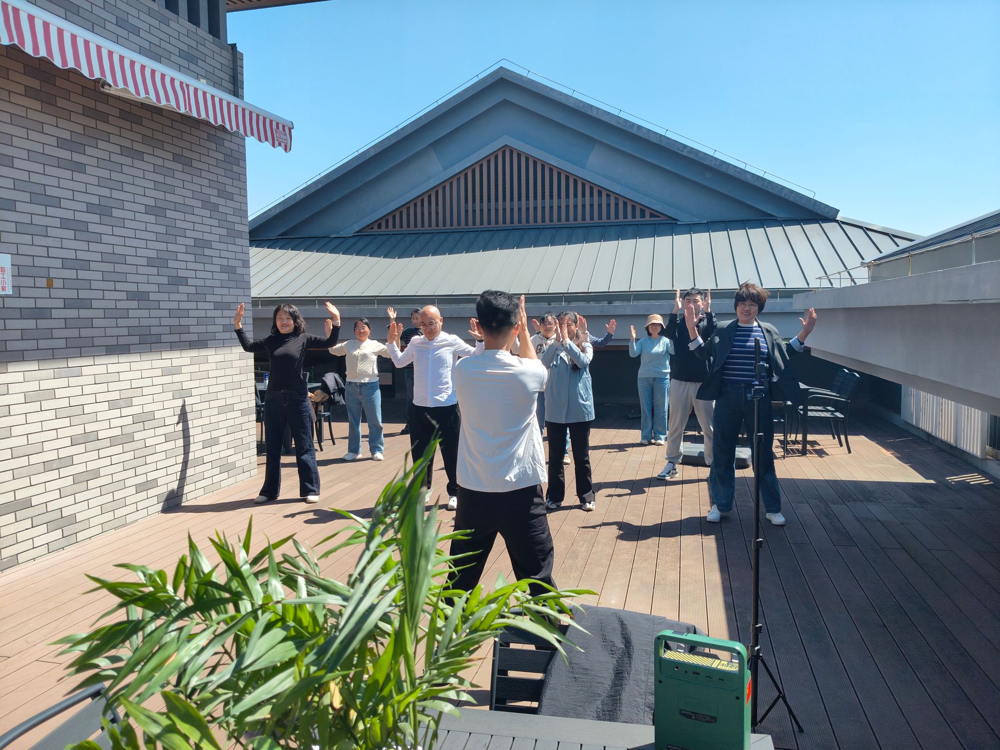 上午10点半,文法学院教职工们齐聚活动场地,在轻快悠扬的音乐声中,跟随领操员的动作节拍,整齐划一地做起工间操。伸展、弯腰、踢腿……每一个动作都标准到位,每一次跳跃都充满活力。尽管是首次集体工间操活动,但老师们参与热情高涨,现场欢声笑语不断,形成了学院一道亮丽的风景线。